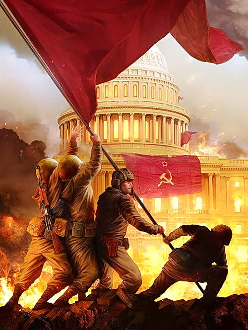 Водружён на склонённый, фашистский рейхстаг.